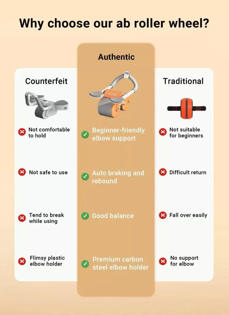 This Auto Rebound Abdominal Wheel helps you burn stubborn belly fat, strengthen your core, and tighten your waistline from the comfort of your home